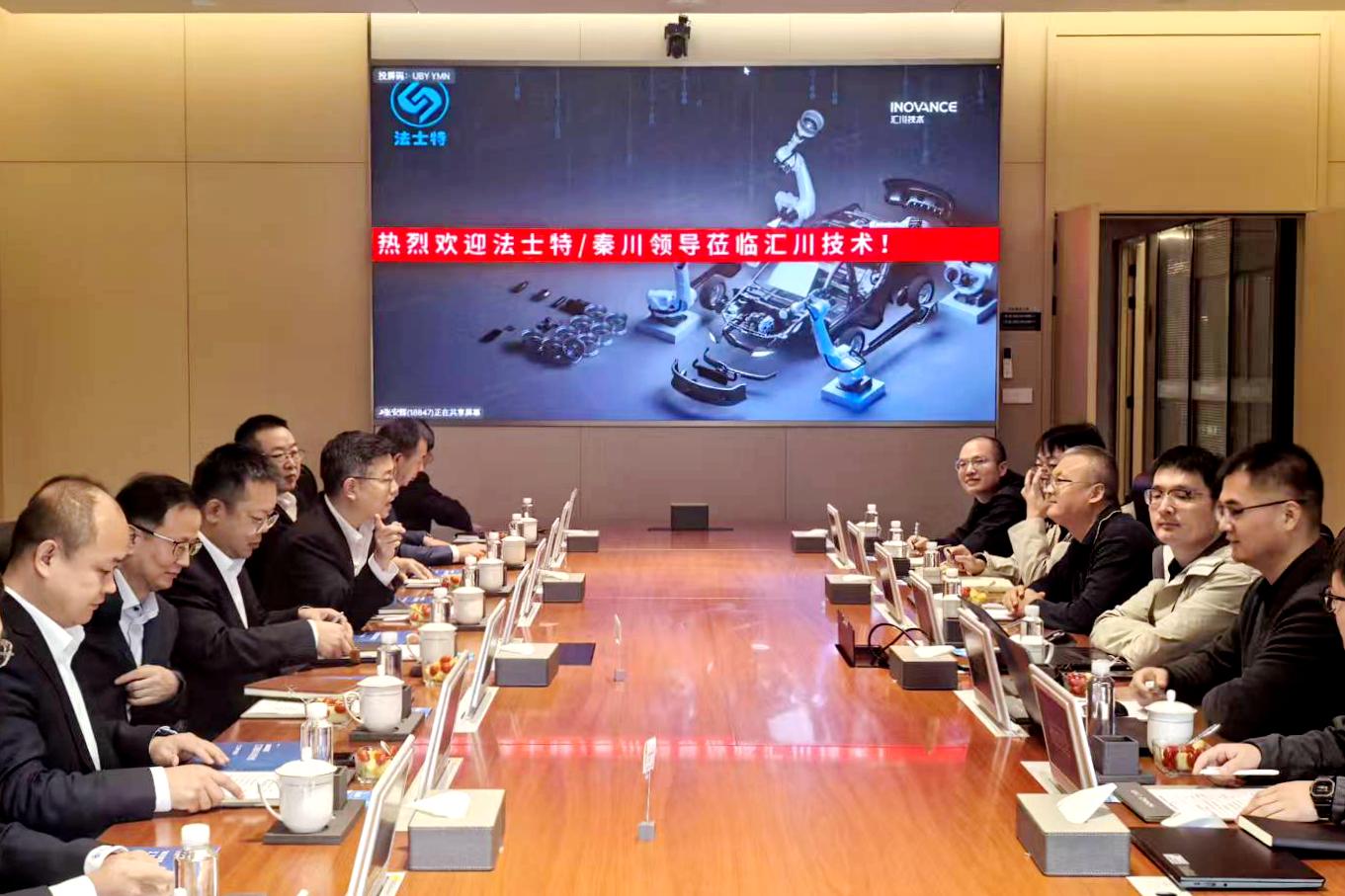 242025-10马旭耀董事长率队访问苏州汇川公司 发布日期:2025-10-24 发布日期:2025-10-24 点击量:154 点击量:15410月22日,法士特集团党委书记、董事长,秦川集团党委书记、董事长马旭耀率队访问苏州汇川技术有限公司,先后与汇川技术联合创始人、副总裁张卫江,汇川联合动力董事长李俊田,围绕新能源产品创新发展、智能制造转型升级、企业文化建设等展开深入交流。座谈中,马旭耀董事长详细介绍了法士特、秦川在生产运营、科技研发、市...