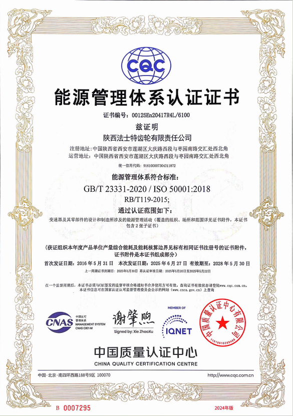 陕西法士特齿轮有限责任公司能源管理体系认证证书